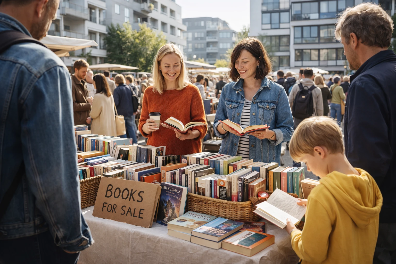 Bücherbasare, Flohmärkte, Schulaktionen oder Tauschregale sind perfekt für größere Mengen oder für Bücher, bei denen es eher um Weitergeben als um Gewinn geht.